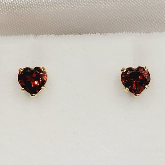 10K Yellow Gold Heart Shape Genuine Garnet 5x5mm Stud Earrings