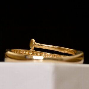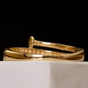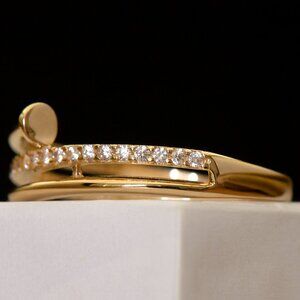 10K Yellow Gold Nail Ring, Dainty CZ Pave Ring, Size 7