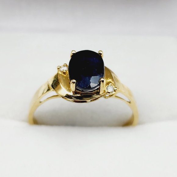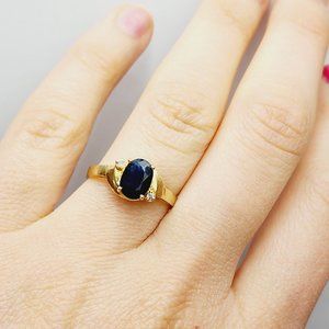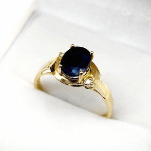 10K Yellow Gold Natural Blue Sapphire 8x6mm with Diamonds Ring