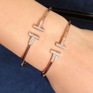 NEW Beautiful Fashion 10K Gold Unisex T style Bracelet set with Cubic Zirconia , available in Yellow Gold