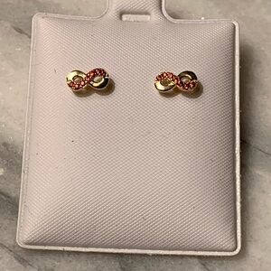 10k yellow gold infinity stud earrings with Ruby cz and screw backs. Brand new. Perfect for adults, kids, and babies. REAL GOLD