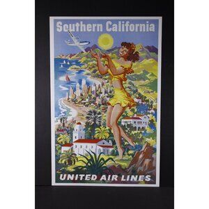 11 x 17" United Air Lines Southern California small tourist poster, vintage