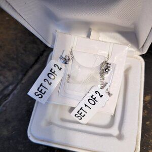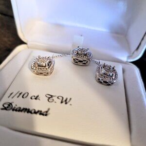 1/10ct Diamond Sterling Silver Stud Earring & Necklace Jewel Set 18"