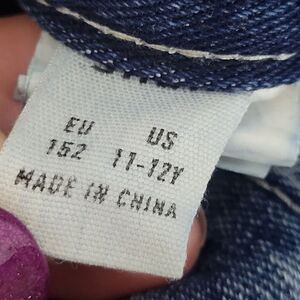 Stylish blue jeans with colorful butterfly embroidery. Perfect for casual wear. EUC 11-12Y
