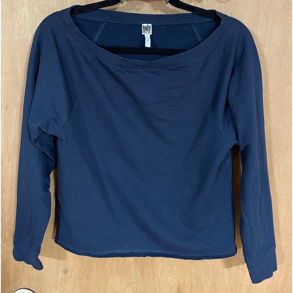 #113- FREE PRESS-cropped navy blue sweater crewneck medium terry cloth