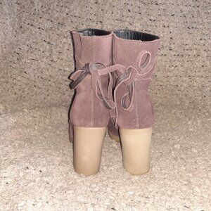 $1195 PIERRE HARDY-Oxblood Suede Booties-Rear Bow-Block Heel-Sz 39-Near Mint