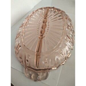12" - 2 Part Relish Oyster and Pearl Pink Depression Glass Tray Anchor Hocking