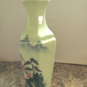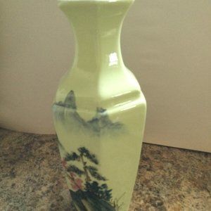 12" Chinese ceramic porcelain vase hexagonal Chinese Mountain water image