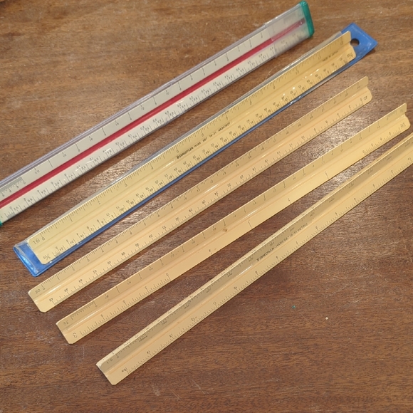 These triangular multi-scale rulers are ideal for architects, draughtsmen, students and artists.