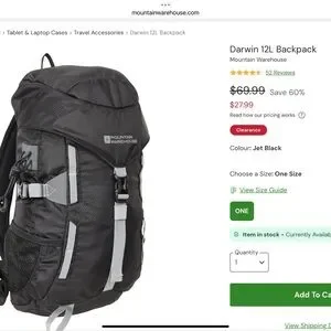 Small 12 L Darwin backpack for smaller people or kids. Ideal and lightweight for a day hike. Comes with a rain cover ☔️ Only used once - too small for my husband!