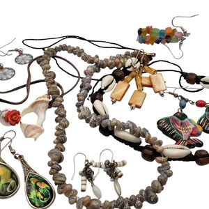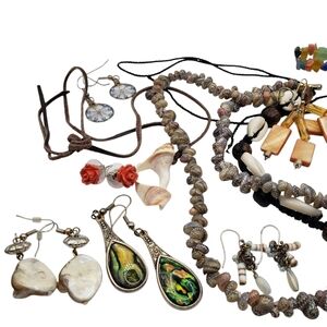12 Piece Jewelry Lot Natural Shells Crystals Earrings Necklaces