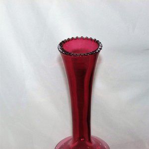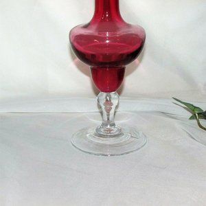 12" Vintage Cranberry Glass Footed Vase Red Clear Base Tall Home Decor