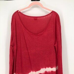 120% Lino Red and white tie dye long sleeve mini dress medium
