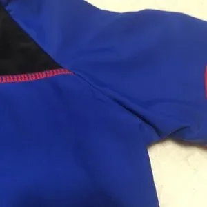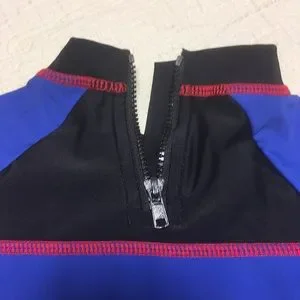 Excellent condition, tiny abrasion damage on back straddling the right sleeve seam - see pics, short zipper at nape of neck, short raglan sleeves, screen print on chest, no tags or labels, brand unknown, size estimated at 12-18mos