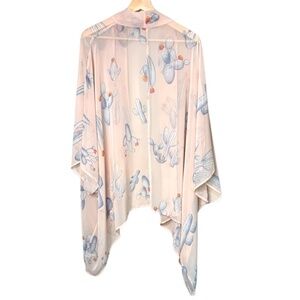 123 STORY x LINE UP Poly Chiffon Cactus Print Poncho / Cover Up / Cardigan O/S