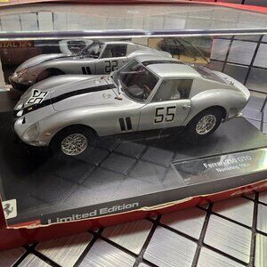 Beautiful 1/24 Scale Carrera Digital Ferrari 250 GTO No.25 1963 Silver – Limited Edition only 999 Produced World Wide. Only Ones available in Canada (Tariffs and Taxes, Brokerage all Paid). This is stunning Detailed Scale Model that you can race and is a great running car these cars run very well out of the box. This car can be switched on the fly to Analog to run on Analog Carrera Evolution and Wood Tracks. The Digital Carrera Ferrari 250 GTO No.25 1963 Silver – LTD Edition is a stunning and powerful slot car that embodies the spirit of endurance racing. Based on the iconic Ferrari 250 GTO this meticulously crafted 1/24 scale replica features the striking fantasy livery of the Ferrari 250 GTO No.25 1963 in Silver – Limited Edition team, complete with authentic sponsor decals and detailing. Equipped with Carrera's cutting-edge digital technology, this slot car offers advanced features such as lane changing, lap counting, and programmable racing modes, allowing for customization and immersive racing experiences. The precision engineering ensures smooth and reliable performance on the track for years to come, while the wireless controllers provide responsive handling, giving drivers the control they need to navigate every twist and turn with confidence. Whether you're racing against friends or testing your skills in solo mode, the Carrera Ferrari 250 GTO LTD Edition delivers adrenaline-fueled excitement and competitive action. Perfect for enthusiasts of all ages.