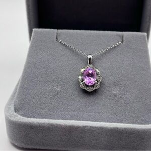 1.25 CT Oval Cut Pink Sapphire and .30 CT Diamond Necklace 925 Sterling Silver