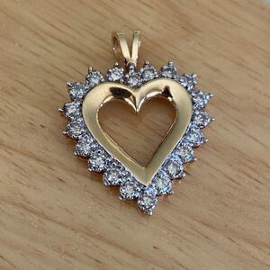 Absolutely stunning open heart pendant featuring 1.25 carats of genuine diamonds, set in two tone 14K yellow and white gold. In perfect, as new condition.