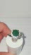 Brand new solitaire emerald ring, stone size 7.0 mm in diameter, 1.25 carat weight, round cut, opaque green colour. Side stones round white topaz. Ring weight 2.30 gr. Ring size 7.5