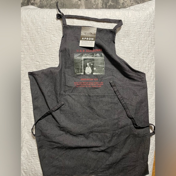 Great Alcatraz memorabilia in the waist tie and adjustable neck strap apron