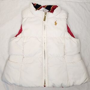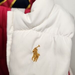 Stylish Toddler Reversible zipup Hot Pink & White puffer vest with Pockets on both sides, by Ralph Lauren.