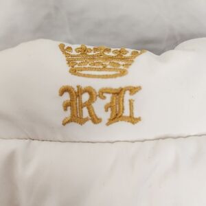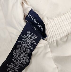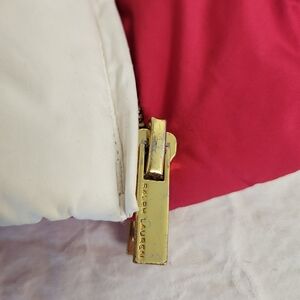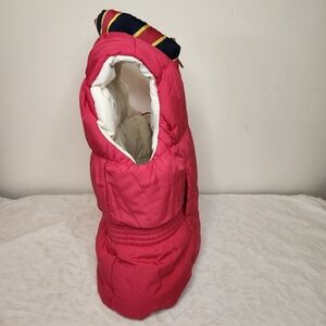 Gold branded hardware, classic embroidered logos, cinch waist, diagonal striped collar on pink side, Down & Duck filling, Great Condition, some scratches on zips, Age 12 Months.