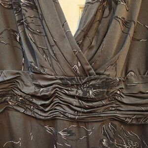 Gorgeous black Evan-Picone evening dress, size 12 Petites. Excellent condition, like new. Ruching below bust, glitter in all the raised floral designs. Very dressy, perfect for that special occasion.
