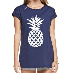Women's navy pineapple tee. Size medium. Soft, stretchable material (60% polyester, 35% rayon, 5% spandex). 12Pm by Mon Ami brand. New, never worn.