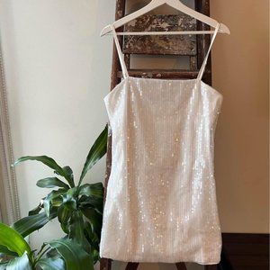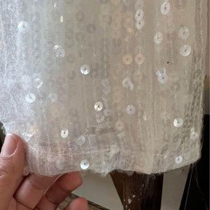 Super cute little dress! I bought 2 for my bachelorette (one medium and one large). I wore the medium once and still have both sizes. The size Large is unworn and tags are still attached, photos I took myself are of the size M. Very sparkly and fun in person!