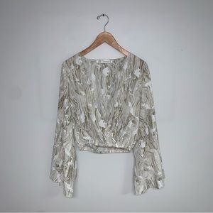 12th Tribe x TheSaltyBlonde Wide Sleeve Blouse Wrap Front Beige Groovy Size S