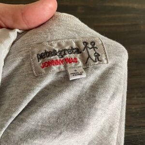 Stay comfortable and stylish with this unique Pete & Great by Johnny Was long sleeve hoodie. Featuring a light gray color with a contrasting silk fabric on the hood and front pouch pocket, this pullover is perfect for laid-back days or light layering.
