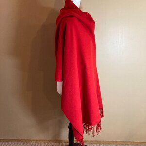 Stay warm this winter with this extra-large red wrap, complete with fringe detailing. New with tags, this cozy wrap is perfect for adding a pop of color and warmth to your winter wardrobe.