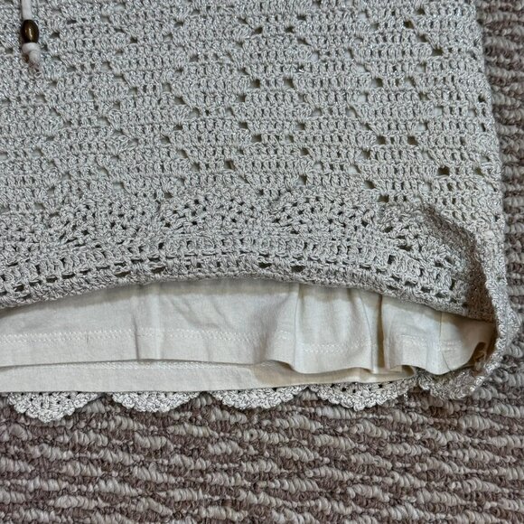 #138 Women's Roxy Crochet Cream and Metallic Thread Mini Skirt, Size XL