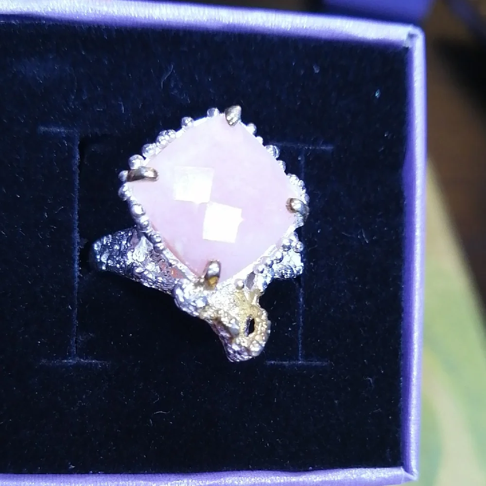 14 K White Gold Vermeil Silver 925 Stamped Faceted Soft Pink Opal. Bew In A Box