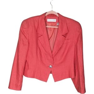 14 - Valerie Stevens | 100% Linen Coral Cropped Blazer