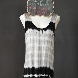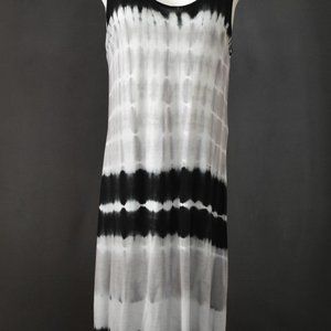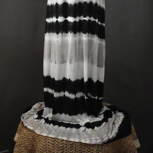 This Pink Rose tye dye maxi dress and Ardene paisley duster are in excellent condition. This tank style dress boasts medium thick shoulder straps, beige, white and black vertical stripe pattern. Pair it with this Ardene wild paisley black and white duster, a jean jacket, or go it alone. Limitless choices with this set.