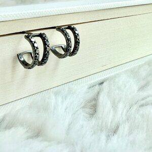 14K BLACK GOLD GEM DOUBLE HOOP EARRINGS