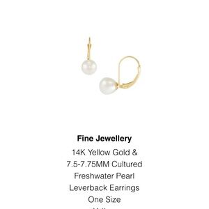 14K Yellow Gold Freshwater Pearl Leverback Earrings – Brand New with Tags