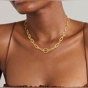 Non Tarnish Chunky Gold Necklace: Don't worry about having to toss this chunky toggle necklace after a few wears or staining your clothes or neck due to tarnishing. Our chunky link necklace set is crafted with the latest eco - friendly electrophoretic coating which forms a protective barrier against oxidation. Also, our gold link necklace are lead-free, nickel-free, hypoallergenic, waterproof, suitbable for all-day wear.