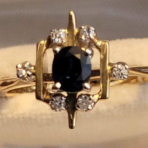 14K Gold Ring with gemstones (small diamonds and saphire)