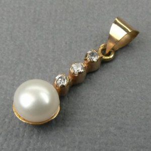 14K Rose Gold White Topaz & Pearl Pendant 1.0"