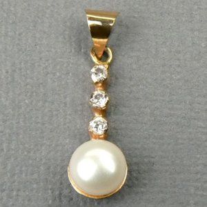 Gold Pearl Pendant size: 25.0 mm White topaz stones, total: 3 Stones size: 2.0 mm in diameter Freshwater pearl, total: 1 Pearl size: 6.5 mm Item weight: 1.27 g Metal type: 14K rose gold, marked 585 Condition: used, as pictured🎁 * To get $15 OFF your first purchase on Poshmark use my invite code: GOLDNIDEA