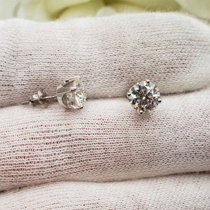 14K Solid White Gold 2 Carats Moissanite Stud Earrings D-FL