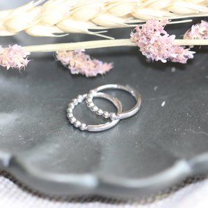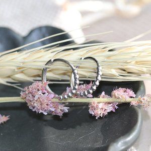 14K Solid White Gold Thin Beaded Huggie Hoop Earrings "the Simple Things"