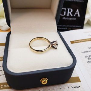 14K Solid Yellow Gold 1 Carat Round Moissanite Solitaire Engagement Ring D-FL