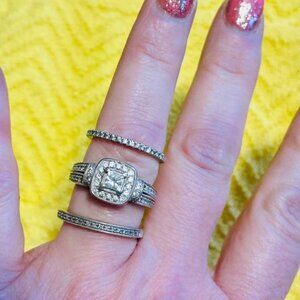 Also for sale, matching wedding band 14K White Gold with diamonds and 5yr anniversary band 14K White Gold with diamonds. Total retail value $950, asking $500 for both.