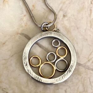 Gorgeous and unique handcrafted 14K yellow gold and 925 sterling silver modernist pendant hanging from 8K white gold chain. Hallmarked.