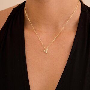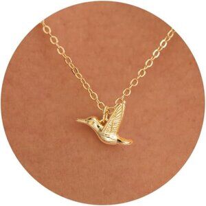 ⚡14k Gold Plated Women Hummingbird Pendant Necklace Elegant Bird Charm Jewelry