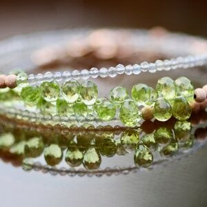 14k Rose Gold Filled Labradorite Peridot Wrap Bracelet Convertible Necklace