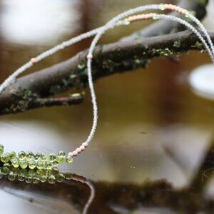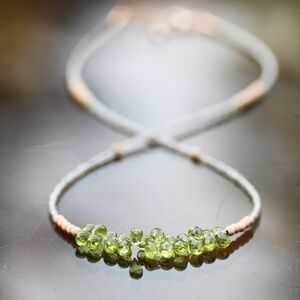 This long layering necklace sparkles with natural peridot & labradorite, creating a captivating shimmer.